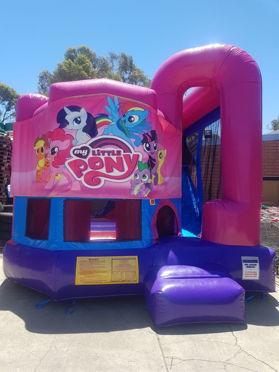 This awesome combo Bouncer features a good size bounce area, ball hoop, rock climb stairs and slide all neatly set out in the one unit.