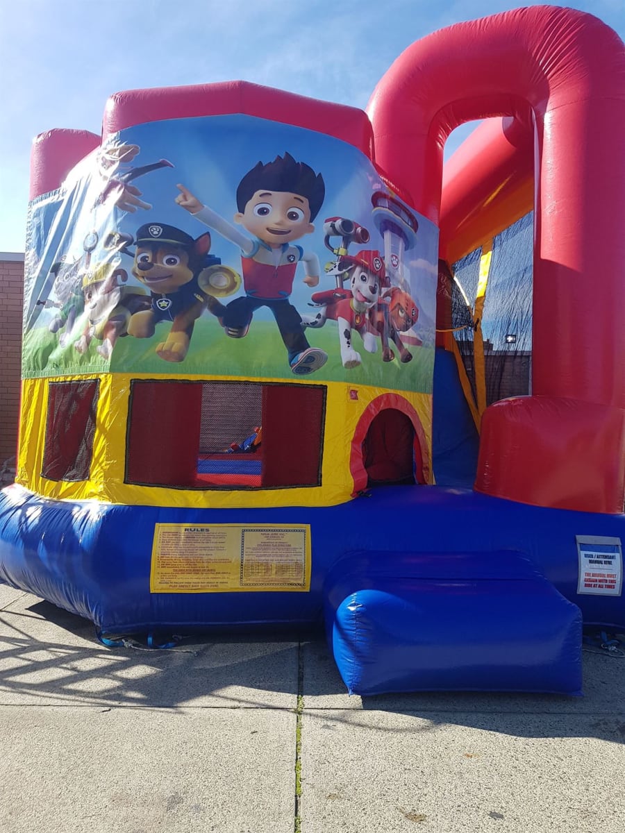 This awesome combo Bouncer features a good size bounce area, ball hoop, rock climb stairs and slide all neatly set out in the one unit.