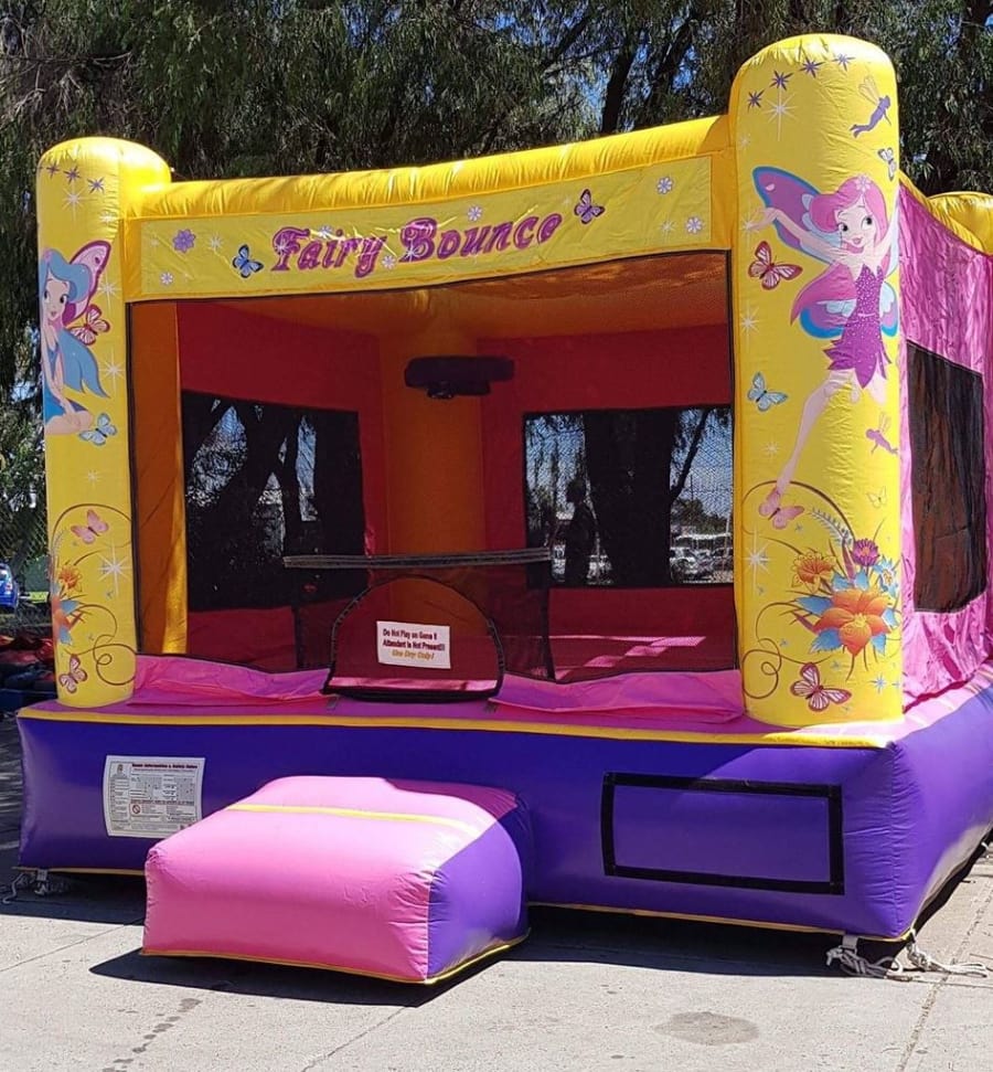 This a great compact themed bouncer full of gorgeous Fairies and Butterflies. It is fully enclosed, and offers sun and rain protection.